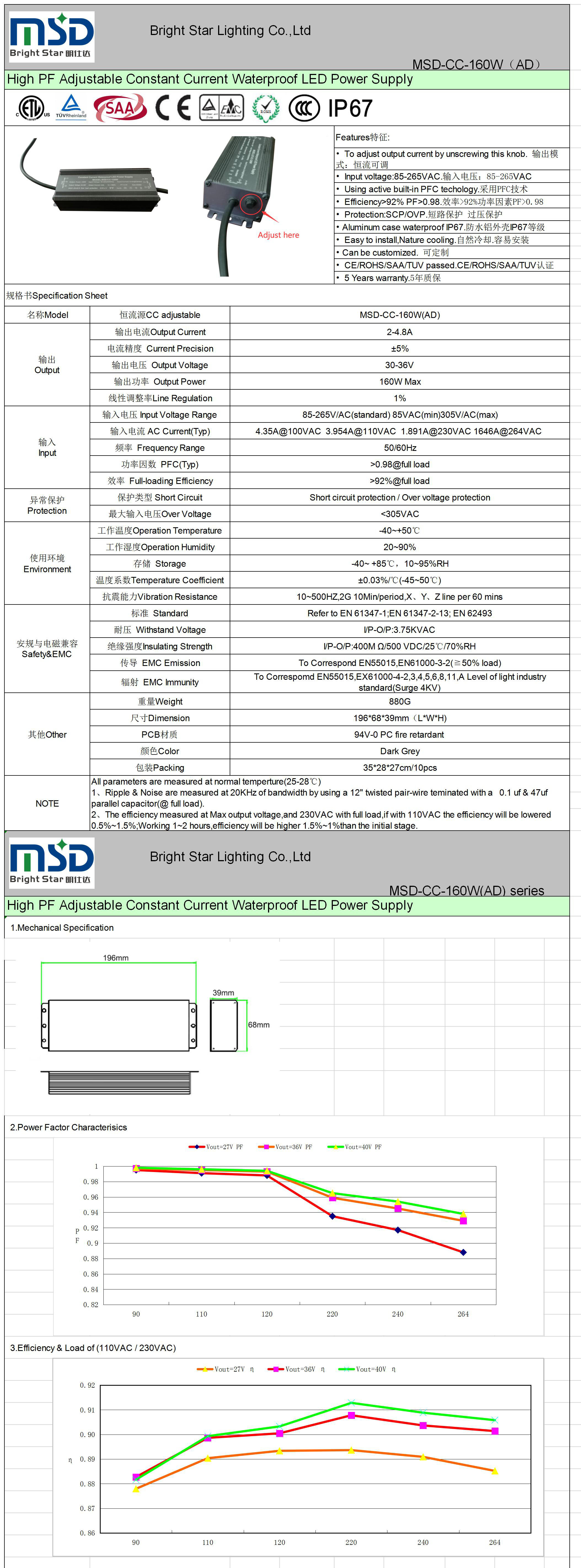 • Efficiency>92% PF>0.98.效率>92%功率因素PF>0.98